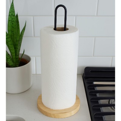 Home Mart Goods Matte Black Iron & Bamboo Paper Towel Holder - 13" Tall