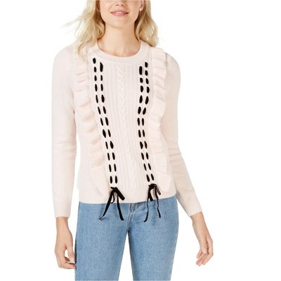 maison Jules Womens Ruffle Lace Pullover Sweater