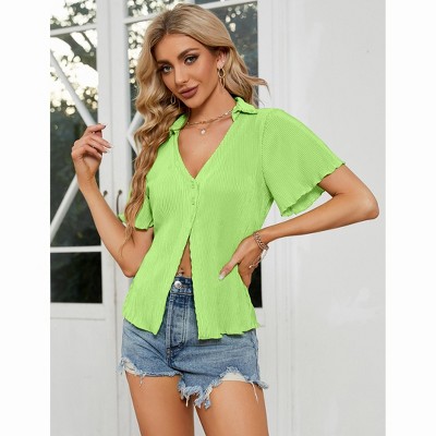 Coolmee Women's Short Sleeve Cardigans Button Down V Neck Lightweight Casual Comfy Draped Pleated Hem Soft Cardigans Sweaters S Green