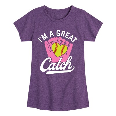 Girls' - Instant Message - I'm a Great Catch Softball Fitted Short Sleeve Graphic T-Shirt