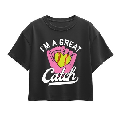 Girls' - Instant Message - I'm a Great Catch Softball Short Sleeve Boxy Graphic T-Shirt
