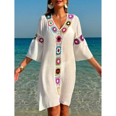 Womens Bathing Suit Coverup Boho Swimsuit Beach Dress Casual Sun Coverage Dress Shirts
