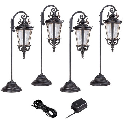 John Timberland Casa Marseille 35" High Traditional 6-Piece Outdoor Landscape Path Light Kit Porch House LED Bulb Brown Bronze Finish Glass Shade