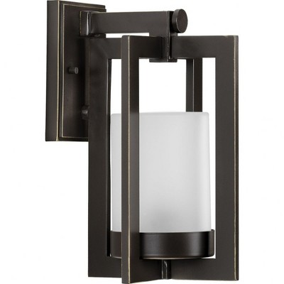 Progress Lighting Crawford 1-Light Outdoor Wall Lantern in Black with Etched White Glass Shade