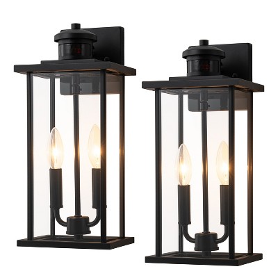C Cattleya 2 Pack Classic Matte Black Motion Sensor Dusk to Dawn Outdoor Wall Lantern