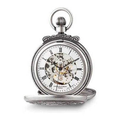Black Bow Jewelry Charles Hubert Chrome-finish White Dial 50mm Ornate Pocket Watch