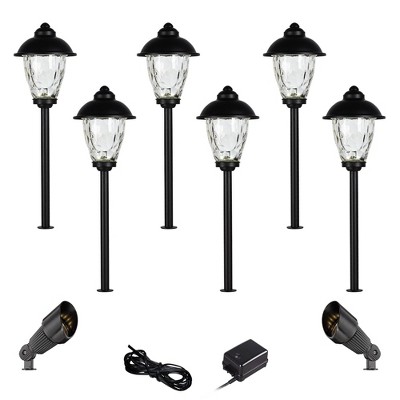 John Timberland Concord 18" High Country 10-Piece Outdoor Landscape Path and Spot Light Set Porch House LED Bulb Black Metal Clear Glass Shade