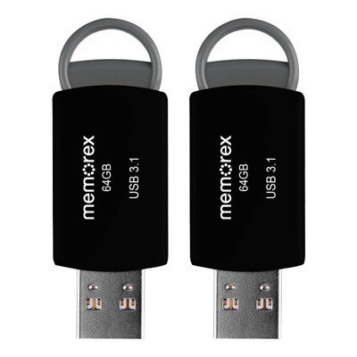 Memorex 64GB USB 3.1 2pk Flash Drive - Black: Plug & Play Memory Stick