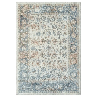 Luxe Weavers Vintage Floral Fringe Rose Blue Indoor Area Rug
