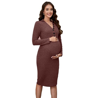 BLUEMING Womens Maternity Sweater Dress V Neck Rib Texture Casual Button Details Stretchy Bodycon Dress