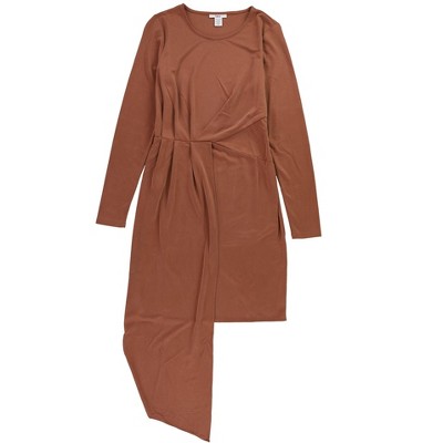 24seven Comfort Apparel Long Sleeve Midi Dress Brown Floral Print