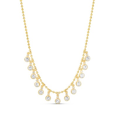 SHYMI Dangling Fancy Circles Necklace — .925 Sterling Silver, 14K Gold-Plated, Cubic Zirconia Detailing, Beaded Ball Chain, Adjustable Length