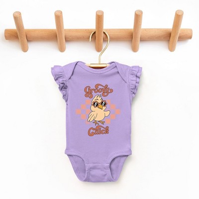 The Juniper Shop Groovy Chick Checkered Baby Flutter Sleeve Bodysuit