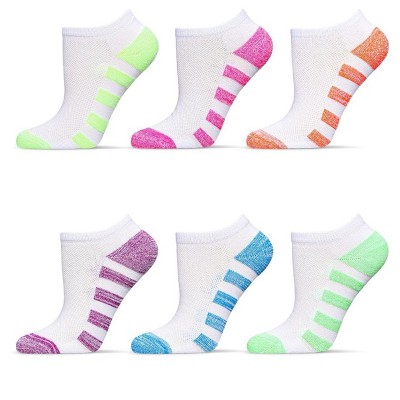 Memoi Women's 6 Pair Pack Highlight Tips Half Cushioned Low Cut Socks White 9-11
