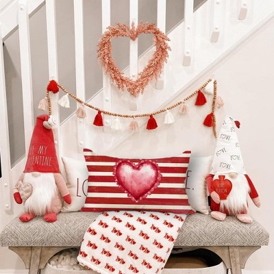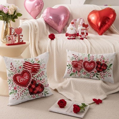 Lomsoe 1pc Valentines Day Linen Pillow Covers Pink and Red Heart Love Valentine Decorations Romantic Lumbar Decorative Throw Pillow Cases.