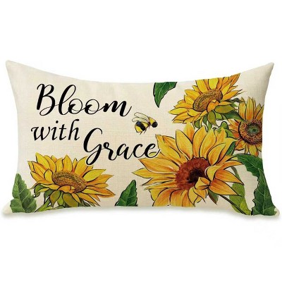 Lomsoe 1pc Linen Decorative Rectangle Pillow Cover, Flowers Throw Pillow Cover,Anniversary Wedding Cushion Case Decoration for Sofa Couch.