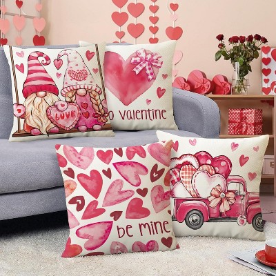 Lomsoe 4pcs Valentines Day Decorative Throw Pillow Covers, Pink Love Heart Truck Porch Pillowcase, Romantic Sofa Cushion Case Decor.