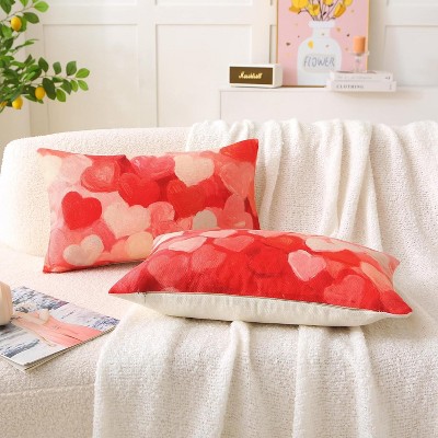 Lomsoe 2pcs Valentines Pillow Covers, Pink Love Heart Throw Pillows Case, Farmhouse Outdoor Decor for Home Sofa Bed.
