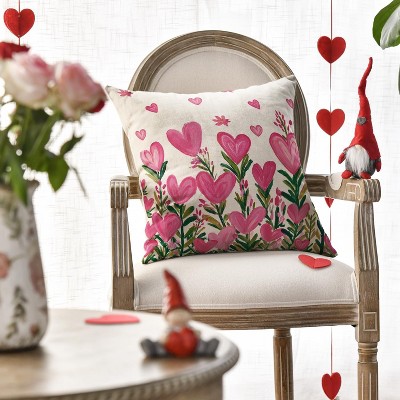 Lomsoe 1pc Valentine's Day Linen Pillow Cover Red Pink Heart Decoration Valentine Lumbar Throw Cushion Case for Bedroom Sofa Couch.