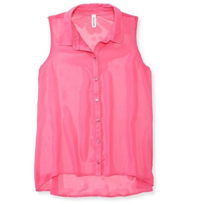 Aeropostale Womens Sheer Solid Color Chiffon Woven Button Up Shirt