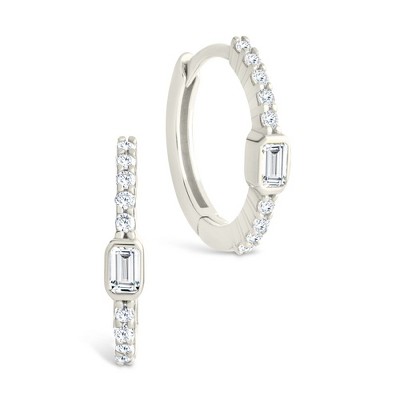 SHINE by Sterling Forever Sterling Silver Emerald Cut Bezel Set Huggie Hoop Earrings