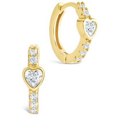 SHINE by Sterling Forever Sterling Silver Heart Cut Bezel Set Huggie Hoop Earrings