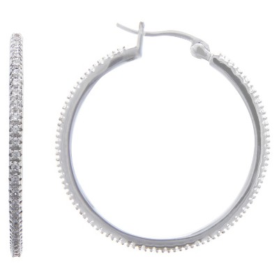 Brass Cross over Crystal Polished Hoop Earrings - A New Day™ Silver: Sterling, Nickel-Free, Simulated Stone