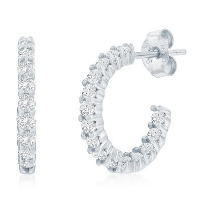 Bella Silver Sterling Silver, 15.5mm Prong-CZ Huggie Hoop Earrings - Silver