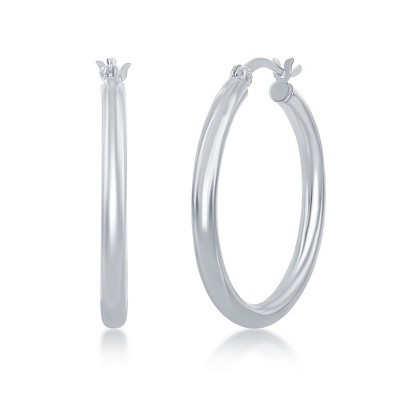 Bella Silver Sterling Silver 3x30mm High-Polished Hoop Earrings - Silver