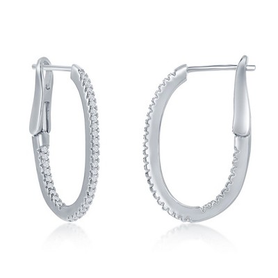 Bella Silver Sterling Silver Ultra-Thin 25mm Hoop CZ Earrings - Oval - Silver