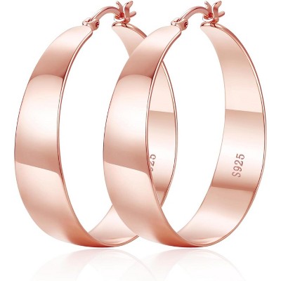 Bella Silver Sterling Silver 4x30mm Flat Hoop Earrings - Rose Gold Plated - Rose