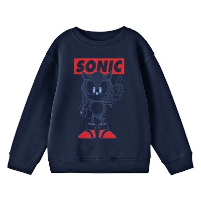 Sonic The Hedgehog Line Art Youth Navy Crew Neck Long Sleeve Sweatshirt-Large