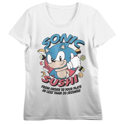 Sonic The Hedgehog Classic Food Frenzy Crew Neck Short Sleeve Women's White T-shirt