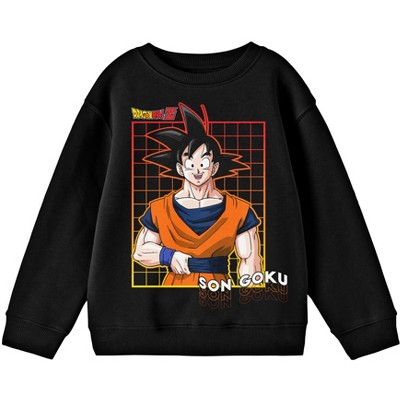Dragonball Z Goku Character with Black Checkered Background Youth Black Crew Neck Sweatshirt