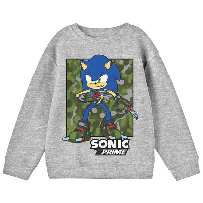 Sonic Prime Sonic On Camo Background Crew Neck Long Sleeve Athletic Heather Youth Sweatshirt