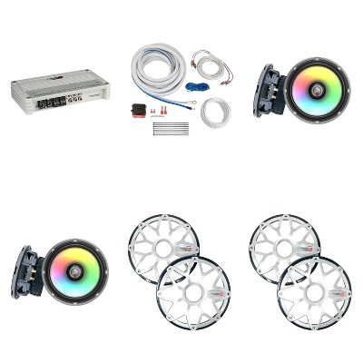 Cerwin Vega Marine Stroker 4 Channel Amplifier with (2) Pair RPM Stroker 6.5 Black/Stainless and Install Kit