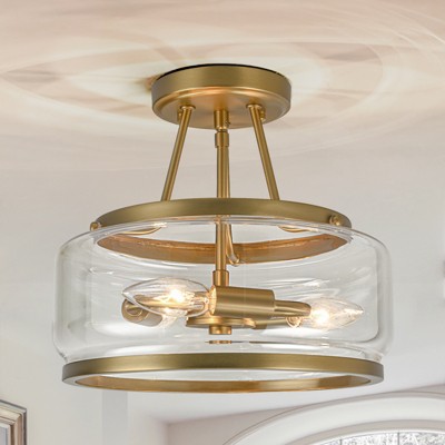 LLHZSY 3-Light Industrial-style Gold Lantern Glass Semi Flush Mount Ceiling Lights Fixture- Gold