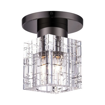 Possini Euro Design Garvin 14 1/2" Modern Flush-Mount Ceiling Light Fixture Kitchen Foyer Hallway 3-Light LED Dimmable Black Glass Bedroom Bathroom