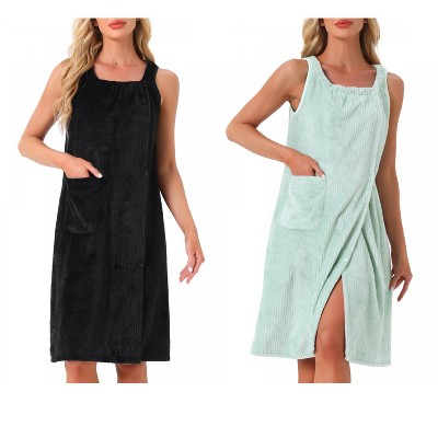 INSPIRE CHIC Women's 2 Pcs Sleeveless Towel Wrap Robe with Strap for Shower