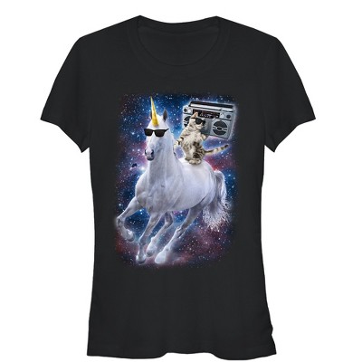 Women's Lost Gods Boombox Cat and Unicorn Space Song T-Shirt