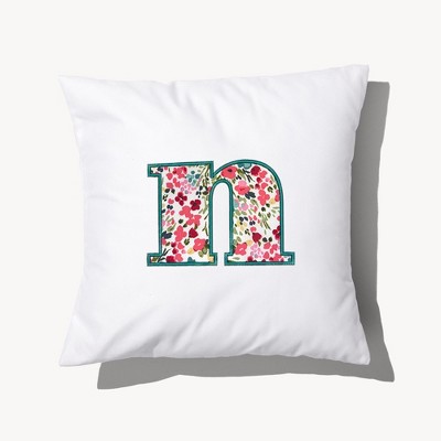 Personalization Mall Boho Floral Initial Embroidered Applique Throw Pillow