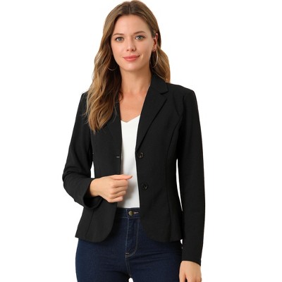 Allegra K Women's Regular Fit Casual Notched Lapel Long Sleeve Denim Pockets Blazer