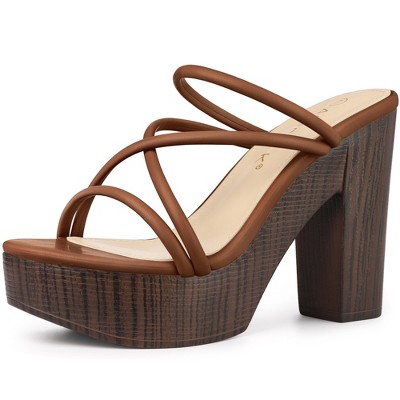 Allegra K Women's Platform Crisscross Strap Chunky Heel Slide Sandals
