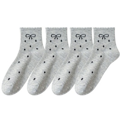 Anna-Kaci Women's Soft Cotton Ankle Socks with Bow Embroidery Polka Dot Design 4 Pairs