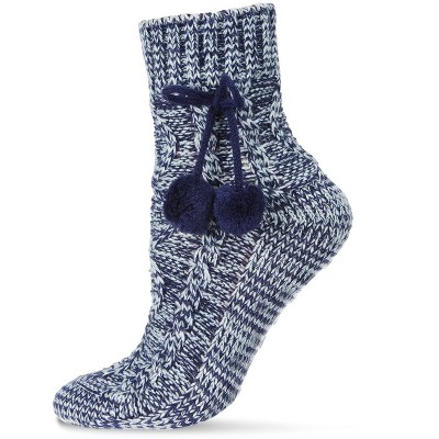 Memoi Textu Pom Ankle Length Thick Knit Lounge Socks