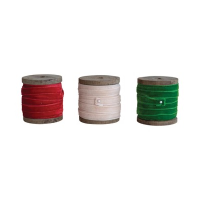 Storied Home 10 Yard Velvet Ribbon on Wood Spool, Set of 3 Colors