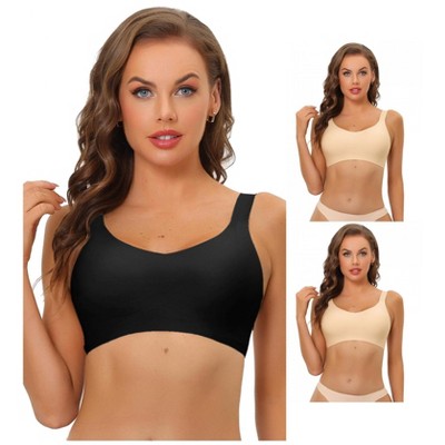 INSPIRE CHIC Women's No Show Smooth Comfort Adjustable Wide Straps Wireless Minimizers Bra 3 Packs