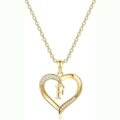 Initial Necklace - 18K Gold Plated Heart Pendant with A-Z Letters, Dainty Birthday Gift for Women and Teen Girls