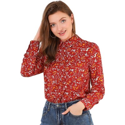 Allegra K Women's Turn Down Collar Dressy Casual Long Sleeve Button Down Shirts