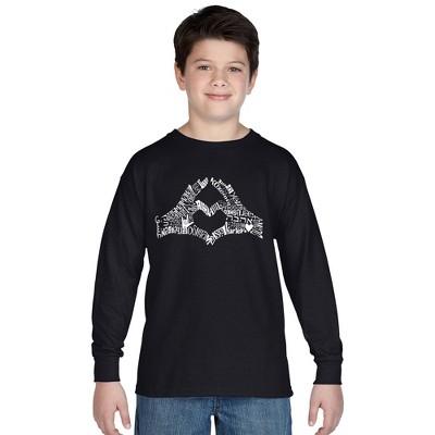 LA Pop Art Boy's Word Art Long Sleeve - PEACE FINGERS